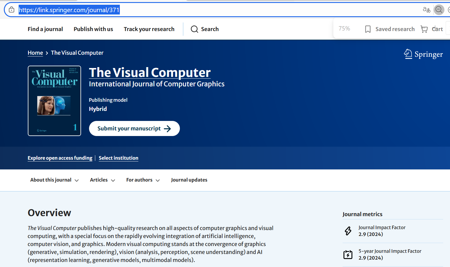 二区一作!我院学生首次在国际权威期刊《The Visual Computer》(JCR Q2)发表高水平学术论文