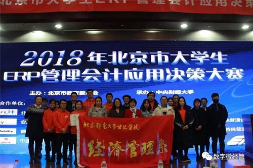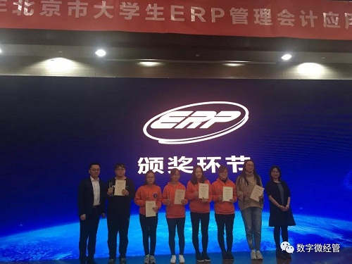 11月17日,学院学子在2018年北京市ERP管理会计应用决策大赛中获得佳绩,获得1项二等奖、2项三等奖、1项优胜奖、2项优秀个人奖、2项优秀指导老师奖、1项最佳组织奖,并有3名同学成功获得实习资格。