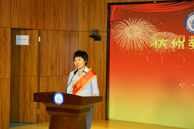 在学生代表答谢师恩后,伴随着欢快的音乐声,庆祝教师节表彰环节正式开始。谢苗峰书记宣读了教师节表彰决定,与会领导、嘉宾分别为2015-2016学年度突出贡献奖团队、优秀干部、优秀教职工、师德先进个人、优秀辅导员及优秀学科竞赛指导教师的获奖者颁奖并合影留念。师德先进个人代表经济管理系王媛老师、优秀干部代表财务处晏燕老师、优秀辅导员代表通信与信息工程系冯舒老师随后发言,表达了教师们将以此鼓舞为动力,更加努力工作的决心和信心。