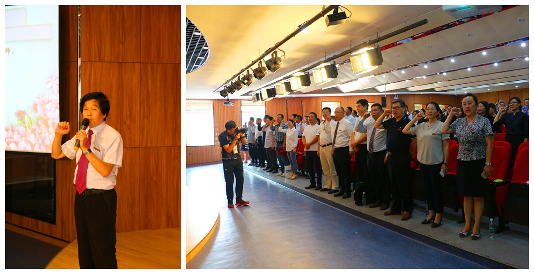 大会的最后一项,也是本次大会的高潮,是由艺术与传媒学院院长胡杰带领全体教师庄严宣誓:“我,庄严宣誓,忠于人民教育事业,贯彻党的教育方针,履行教师神圣职责,传承文明,启智求真;修身立德,为人师表……”铿锵有力地字句回荡在现场,世纪教师们将用实际行动践行这段誓言。
