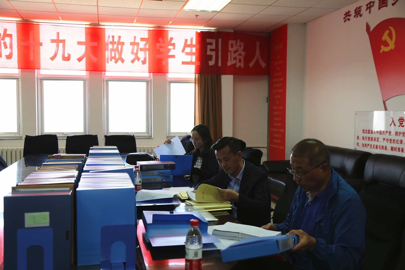 随后,检查组一行前往党员之家查看了学院2013-2017年期间“三会一课”、理论学习、班子建设、党支部基础建设、党员发展、党费收缴使用、党校、教职工思政、共青团、工会、党风廉政建设、安全稳定等方面工作的档案资料。