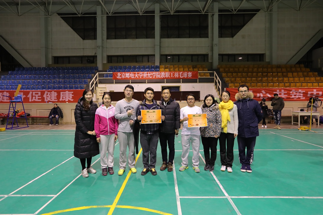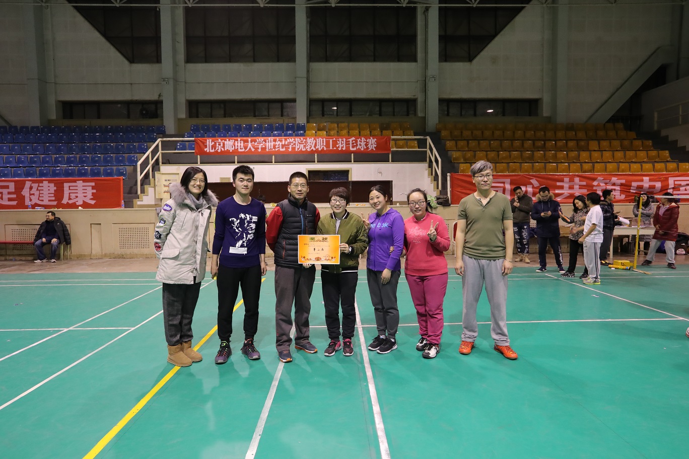 学院羽毛球协会会长王崟任为团体并列第三名自动化系、外语系工会小组颁奖