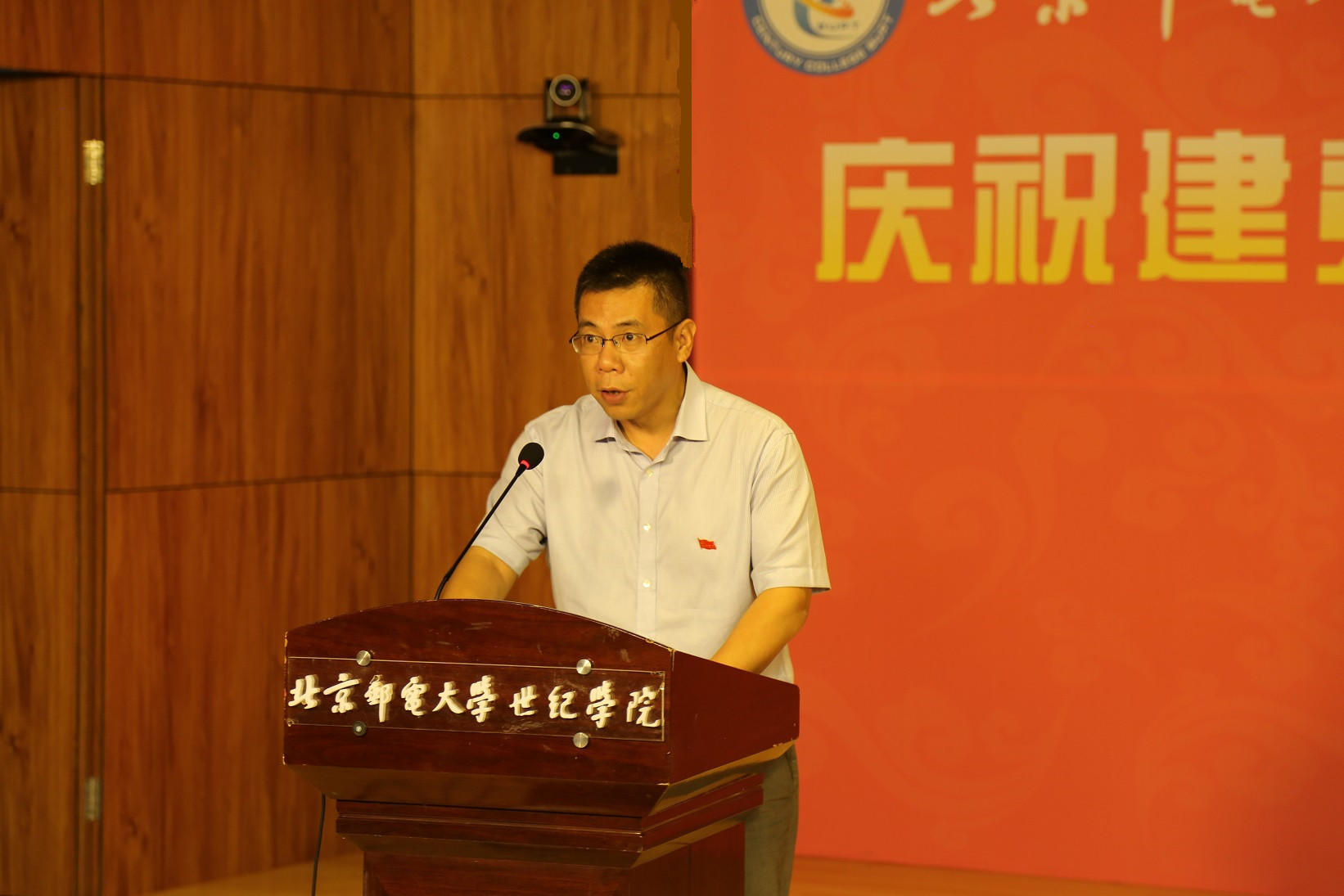 通信系教工党支部书记沙招友、经管学生李孺一分别代表优秀党务工作者、新入党党员发言