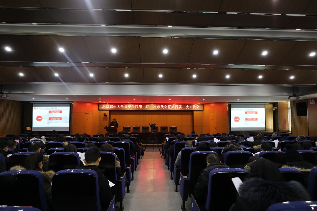 12月28日9:00,伴随着庄严的国歌,学院第二届教代会第二次会议暨第四届工代会第二次会议在学思楼229报告厅隆重召开。党委副书记、副院长兼工会主席孙凯主持会议。101位正式代表和4位列席代表出席会议并听取了学院工作报告、财务工作报告及提案工作报告。