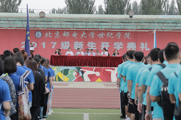 8月18日上午10:30,我院2017级新生开学典礼在运动场隆重举行。北京邮电大学副校长、院长李杰,学院党委书记谢苗峰,副院长李新松、孙凯、夏素霞、何晓玫及学院各教学单位负责人、全体2017级新生、部分新生家长出席开学典礼。典礼由综合办公室主任周伟主持。