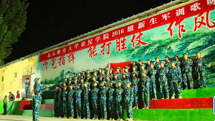 军训生活虽已过半,但同学们的激情不减。这次歌咏比赛给训练生活增添了一抹绚丽的色彩,同时进一步增强了学员们的集体荣誉感。(北邮世纪军训团供稿)。