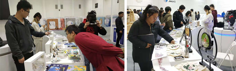 在为期3天的展会中,学院参展的作品包括数字文化国际标准群项目、《诗经》艺术的数字化传播项目、动漫衍生品、虚拟现实漫游系统、虚拟现实游戏、全景图游览等,展品内容丰富、特色突出,观展群众络绎不绝。工业和信息化部产业政策司产业发展处处长杨东伟参观了学院的展品,对传统文化与动漫衍生品结合的教育成果表示赞许,也提出了宝贵建议。同时,新华网对高校展区的报道中特拟题为“满满书香气的高校展区”,对学院展品进行了专访,向大众传播了当代大学生的创意设计作品。