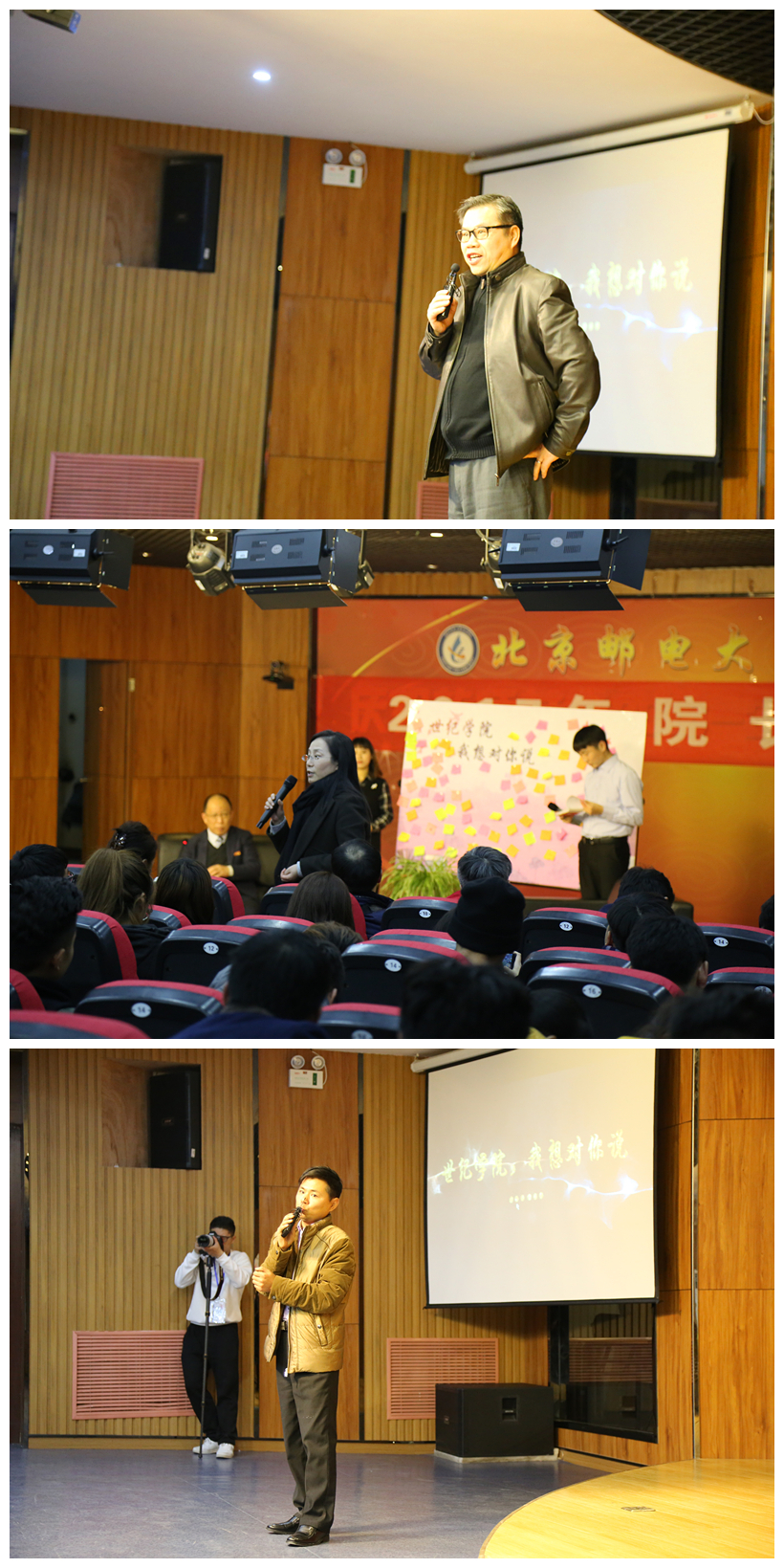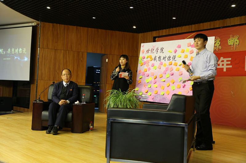 在本次恳谈会上,特别设置了“世纪学院,我想对你说”的环节,校通社将会前广泛征集的意见做成心愿墙,其中既有同学们对学院发展的意见和建议,也有对学院的深情祝福,会上参会师生共同进行了分享。