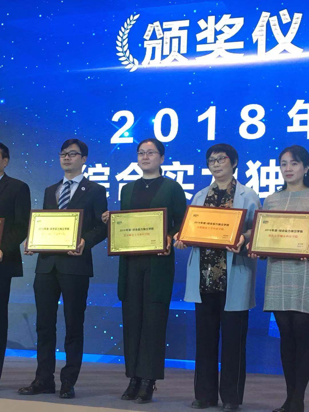 在本届盛典上,学院能够荣获“综合实力独立学院”称号,是社会各界对我院多年来办学成果的一个肯定。建院以来,我院积极探索内涵式发展,培养了一大批高水平应用型人才,服务区域社会经济的能力不断提升。面对荣誉,我们将以此为激励,继往开来,不断提高办学质量和育人水平,为建设成具有影响力的应用型大学不懈努力。(综合办杜函蔚 供稿)