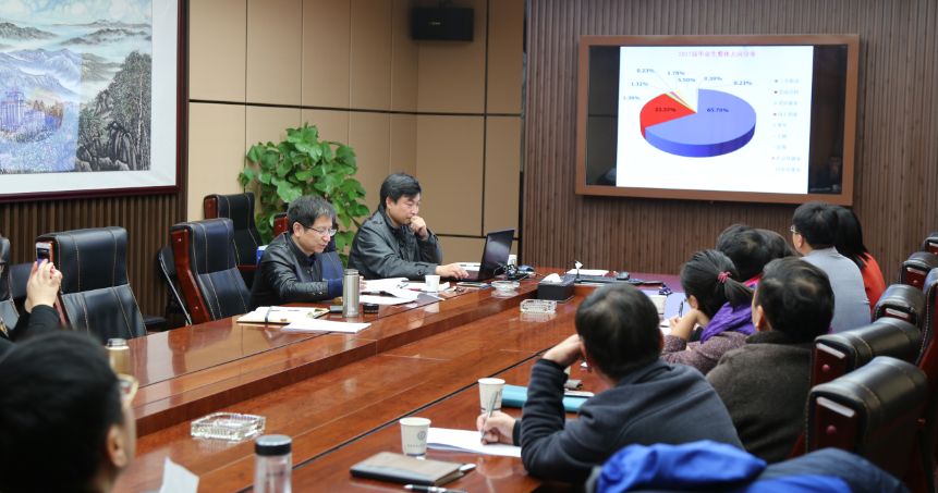 会上,宋向阳处长通报了2017届毕业生就业工作的完成情况,并通过各项就业数据介绍了学院毕业生就业工作的详细情况和趋势,并借助3个维度提出目前就业工作存在的问题和解决思路。