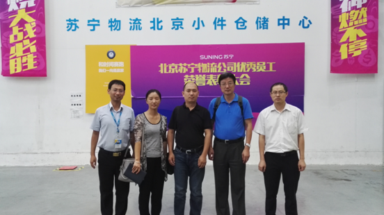 9月14日下午,电子自动化系周晓光主任和物流工程专业教研室主任刘艳辉深入通州物流基地苏宁易购配送中心进行实地考察并座谈。苏宁易购配送中心人事经理薛忠良,仓储部经理刘芳以及金文科技有限公司张强总经理参加了此次座谈会。