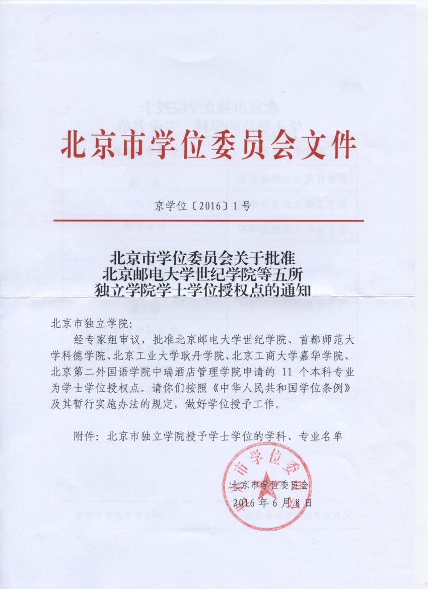近日,我院收到《北京市学位委员会关于批准北京邮电大学世纪学院等五所独立学院学士学位授权点的通知》(京学位〔2016〕1号),我院财务管理专业顺利通过学士学位授予资格重新评估。(教务处时晓艳供稿)