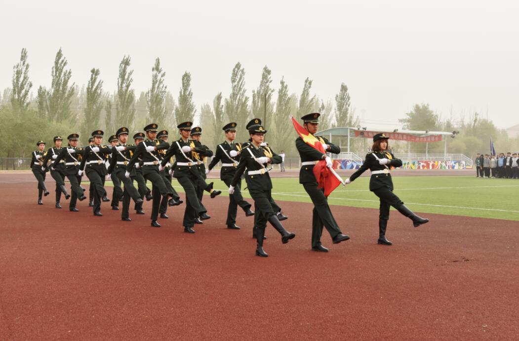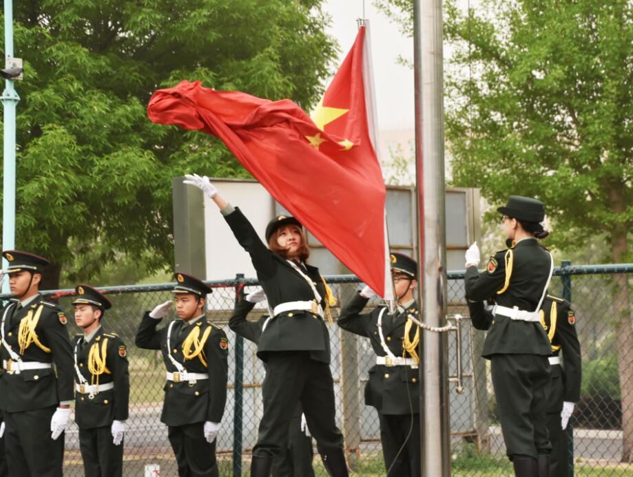 蒙蒙春雨过,一缕清风寒,国旗护卫队高举国旗,步调一致、整齐划一,气宇轩昂地护送国旗并郑重交接至升旗手手中。伴随着雄壮的国歌,鲜艳的五星红旗在师生的庄严注目下,迎着朝阳冉冉升起。同学们在庄重肃穆的气氛中共同回忆历史,缅怀先辈。