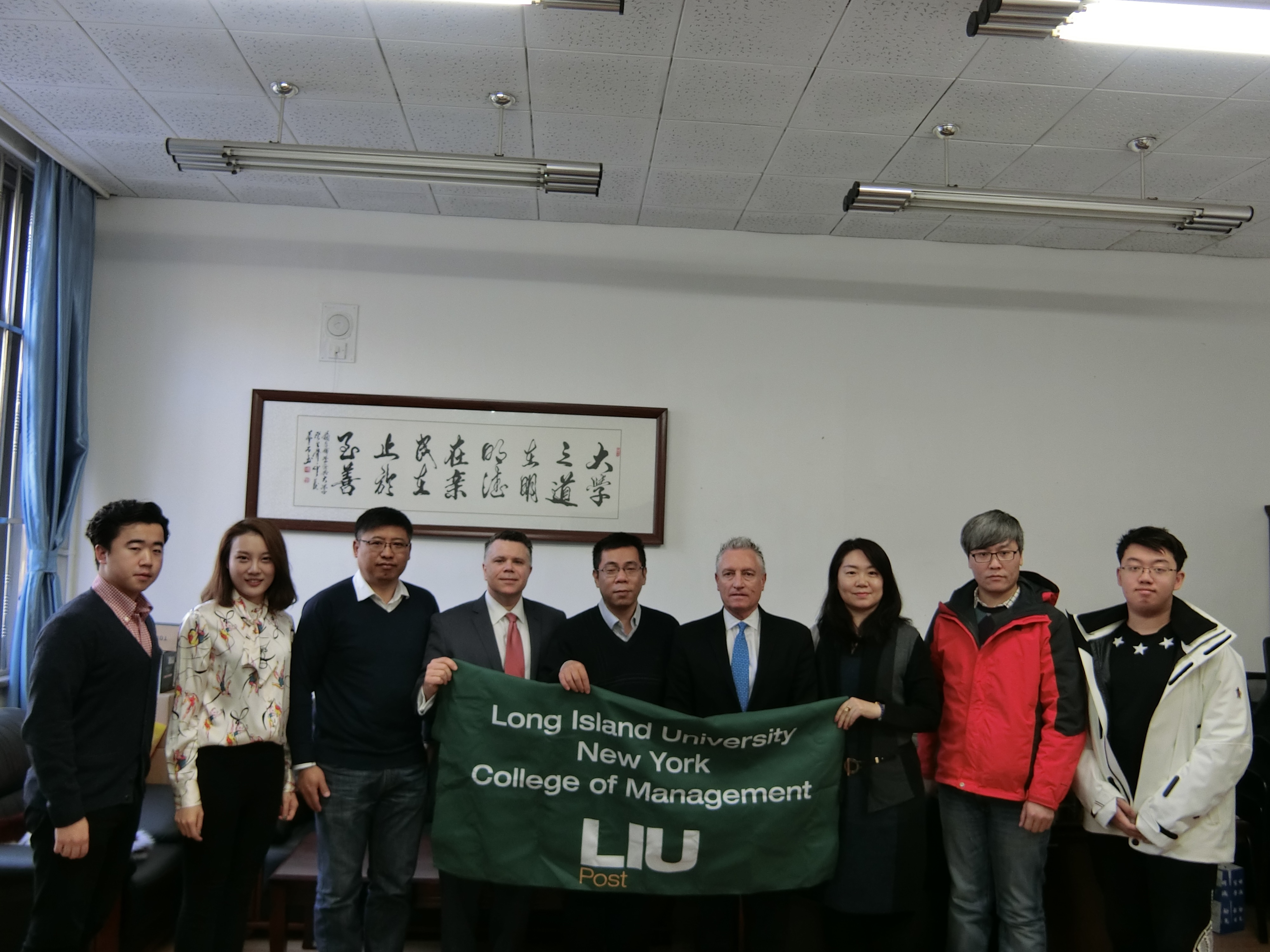 会上,谢苗峰书记对Christopher副校长一行表示热烈欢迎,对2017年学院代表团访问长岛大学时受到的热情接待表示感谢。Christopher副校长表示,对深入讨论联合培养方案等相关事宜十分期待。Robert副校长向与会代表展示了长岛大学学生用无人机航拍的长岛大学的整体风貌,3位留学生代表从中国学生的角度介绍了在长岛大学的学习体会、感受以及取得的成绩。