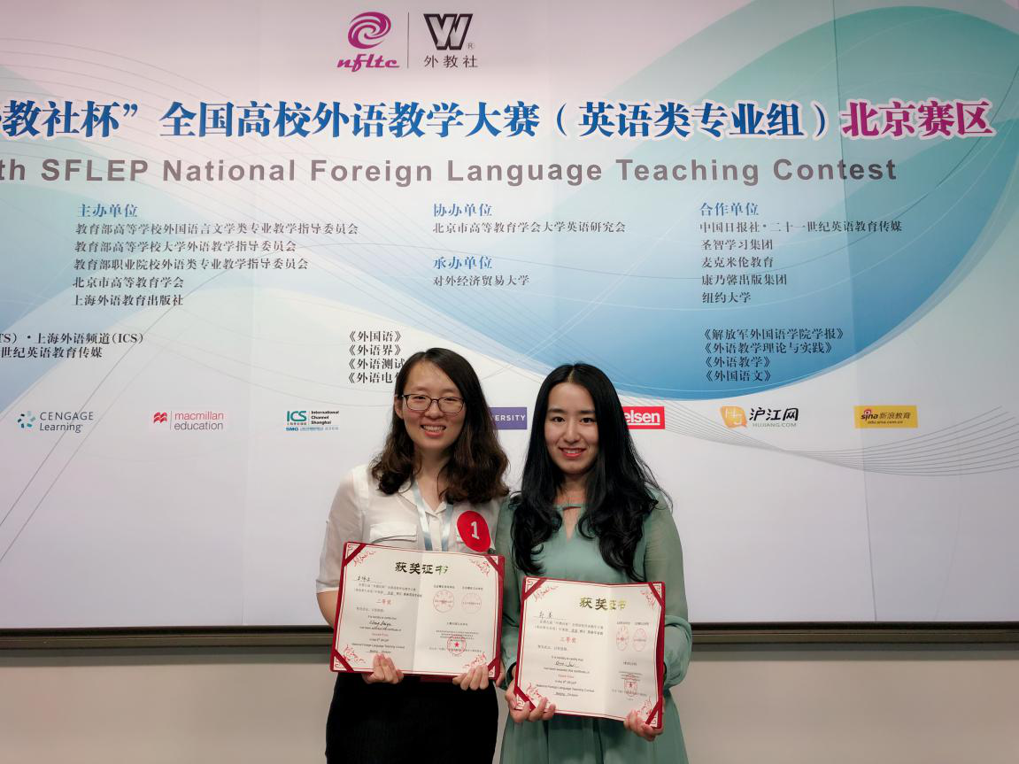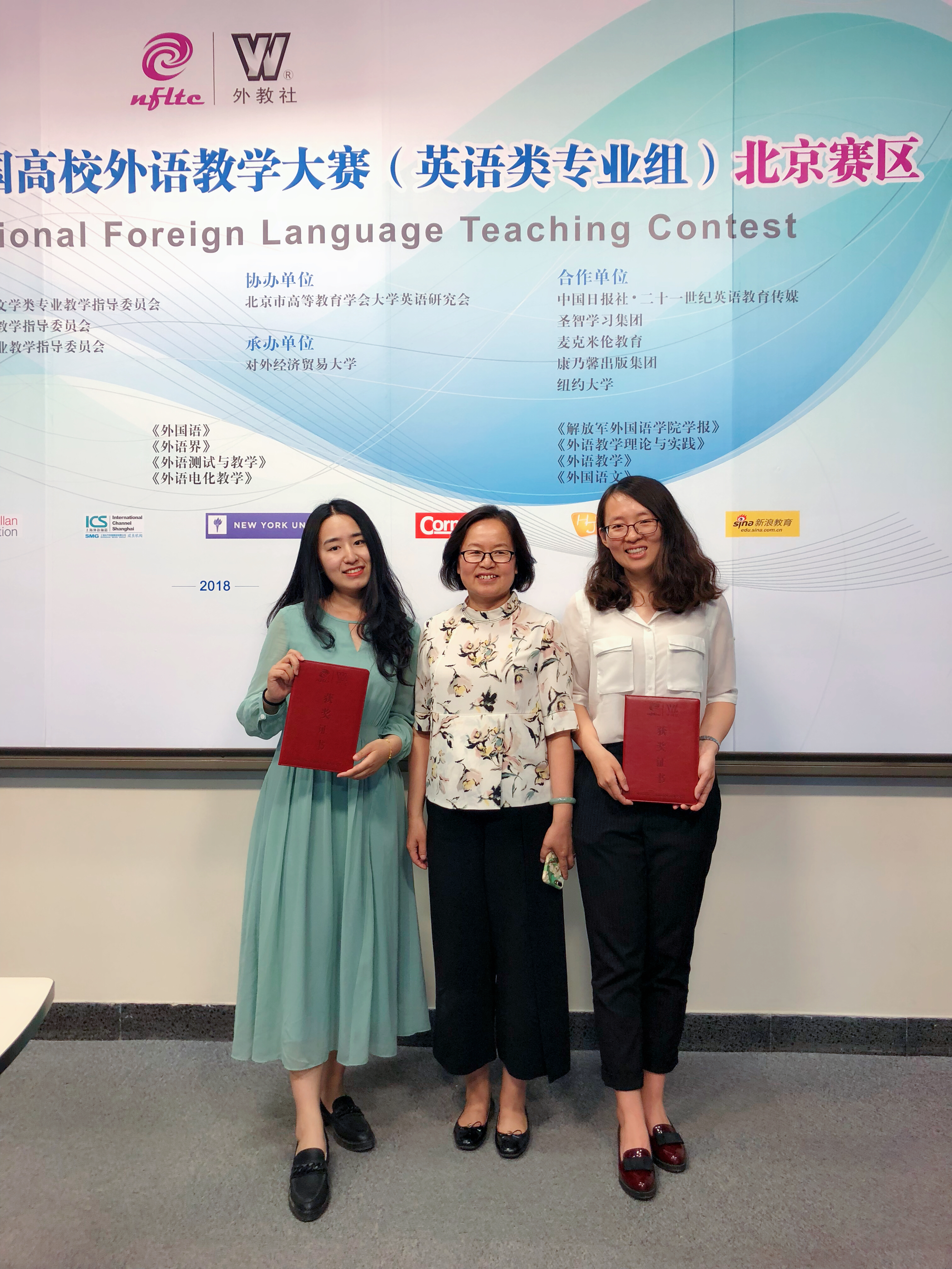 6月9日-10日,在第九届“外教社杯”全国高校外语教学大赛(英语类专业组)北京赛区的比赛中,学院外语系青年教师王佩玉、郭赛分别在商务英语组和英语专业组中获得第二、三名。