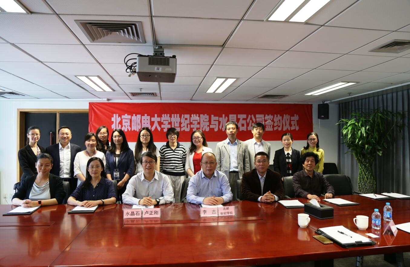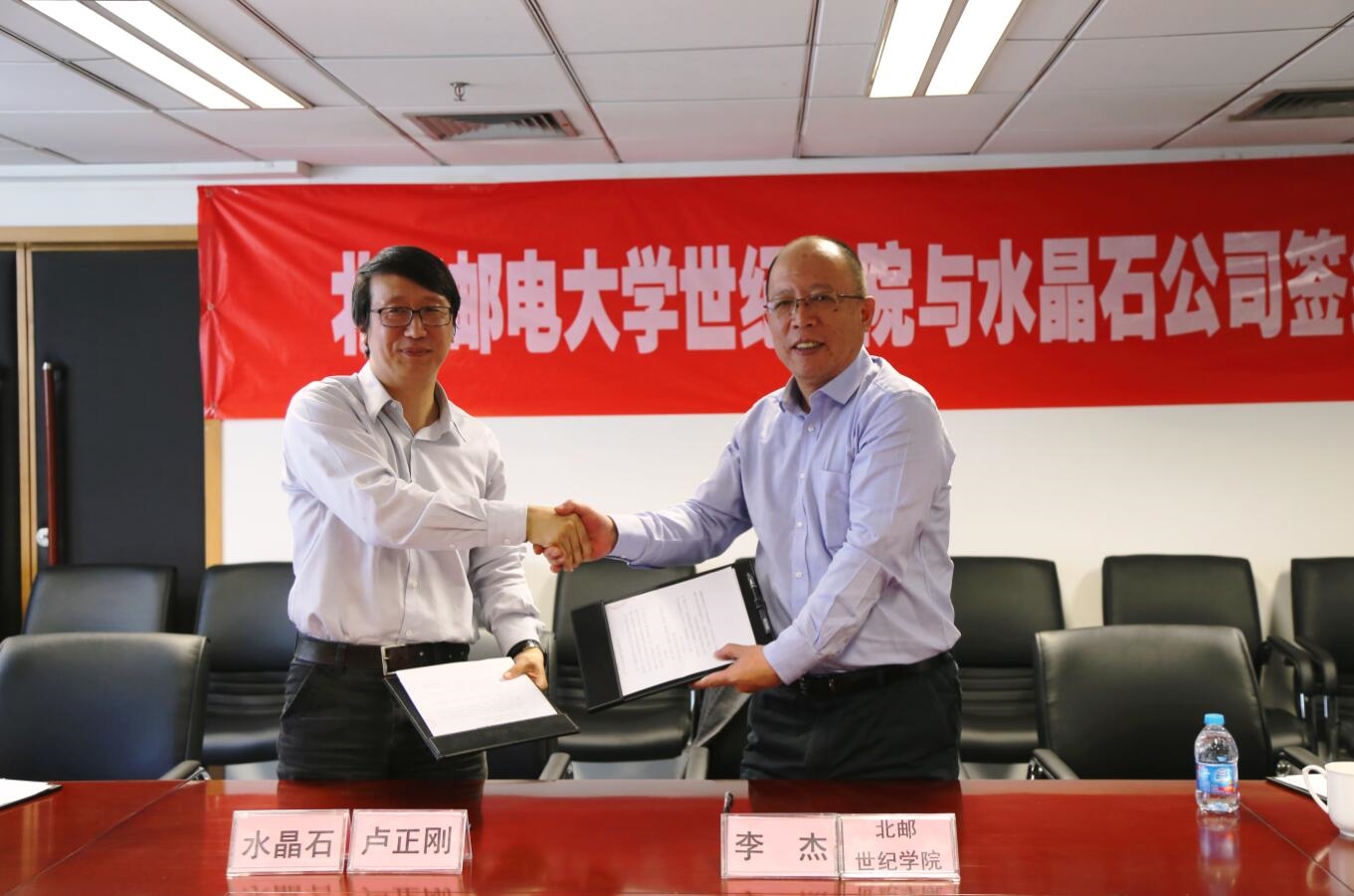 5月10日,北京邮电大学世纪学院与水晶石公司在水晶石总部9层会议室举行校企合作签约仪式。北京邮电大学副校长、世纪学院院长李杰与水晶石公司董事长卢正刚代表双方签订协议。
