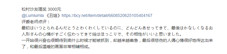 (作品图和评委松村沙友理亲手书写的评语)