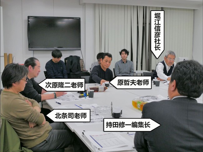 (自左至右:奥蕊文化创始人刘业华,漫画家朱德庸,油画家、连环画家钱逸敏,漫画编辑大师堀江信彦,漫画家北条司,漫画家次原隆二,漫画家富沢順,JC FORWARD董事长分部悠介)