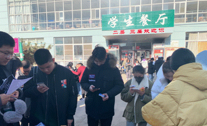 为深入贯彻学习党的十九大会议精神,推动宪法法治理念深入人心,并进一步提高我校学生法律意识,营造遵法、学法、守法、用法的浓厚氛围,2019年12月3日,由学生处主办,学生会权益部承办的宪法知识竞答活动,面向全院学生在食堂门口举行。
