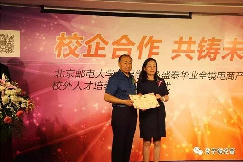 6月14日,北京邮电大学世纪学院&盛泰华业全境电商产业园共建校外人才培养基地挂牌仪式成功举办。参加挂牌仪式的有盛泰华业集团董事长张新成、产业园董事长赵庆伟、电商运营中心副总裁王豪领、人力资源总裁赵秀春、产业合作中心总监李鹏,以及近30家入园企业代表的企业家们。我院副院长夏素霞,经济管理系主任李保升、副主任朱晓杰以及相关教研室教师、学生代表参加了活动。