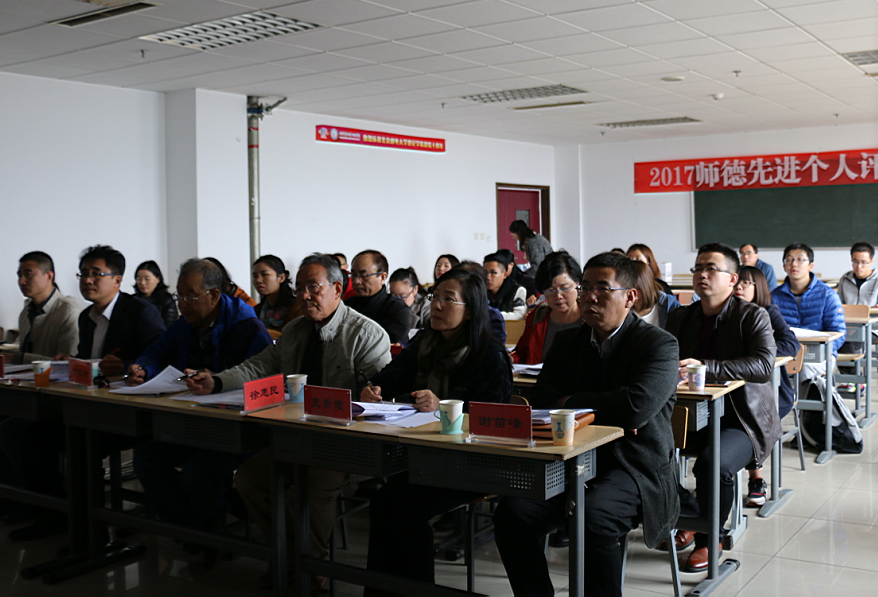 10月25日12:00,学院“师德先进个人”评选教师候选人说课环节布置会在明德楼402会议室举行。会上,党委书记谢苗峰结合习总书记“有理想信念、有道德情操、有扎实学识、有仁爱之心”四有好教师标准,提出了培养教师高尚道德情操的重要性。院工会孙凯主席向评委们介绍了本届“师德先进个人”评选工作流程,并结合习总书记讲话“高校立身之本在于立德树人”精神,强调了师德建设对于我院人才培养的至关重要作用。