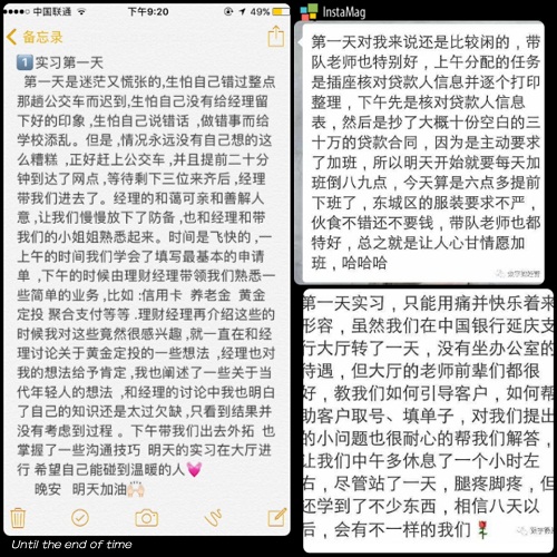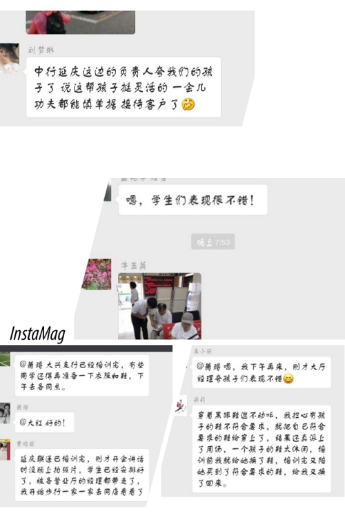 初步入职场,学生们略显窘迫,从开始做一件件事情中,同学们逐渐学习到很多课本上学不到的知识,既开阔了视野,也增长了见识。在实习活动中,带队老师们也非常辛苦。有的支行工作网点间离得远,但是老师们会去每一个网点看望同学们。酷热的天气里,几个网点跑下来,汗流浃背。在同学们下班后,老师在群里确认大家是否安全到家,并叮嘱好好休息,为同学们加油打气!