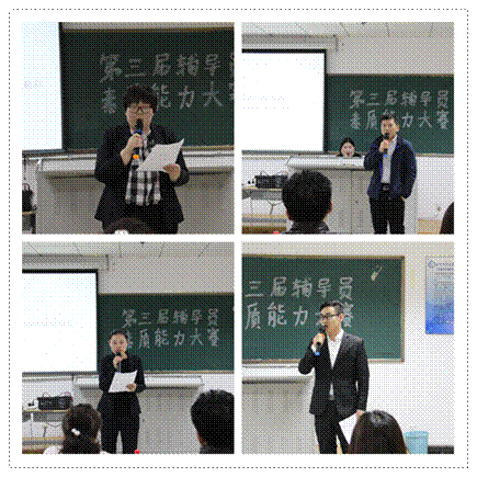 为深入学习贯彻习近平新时代中国特色社会主义思想和党的十九大精神,全面贯彻落实全国高校思想政治工作会议,根据《普通高等学校辅导员队伍建设规定》《高等学校辅导员职业能力标准(暂行)》要求,进一步加强和改进大学生思想政治教育,提升辅导员专业技能和业务素质,4月23日,学院举行第三届辅导员素质能力大赛决赛。