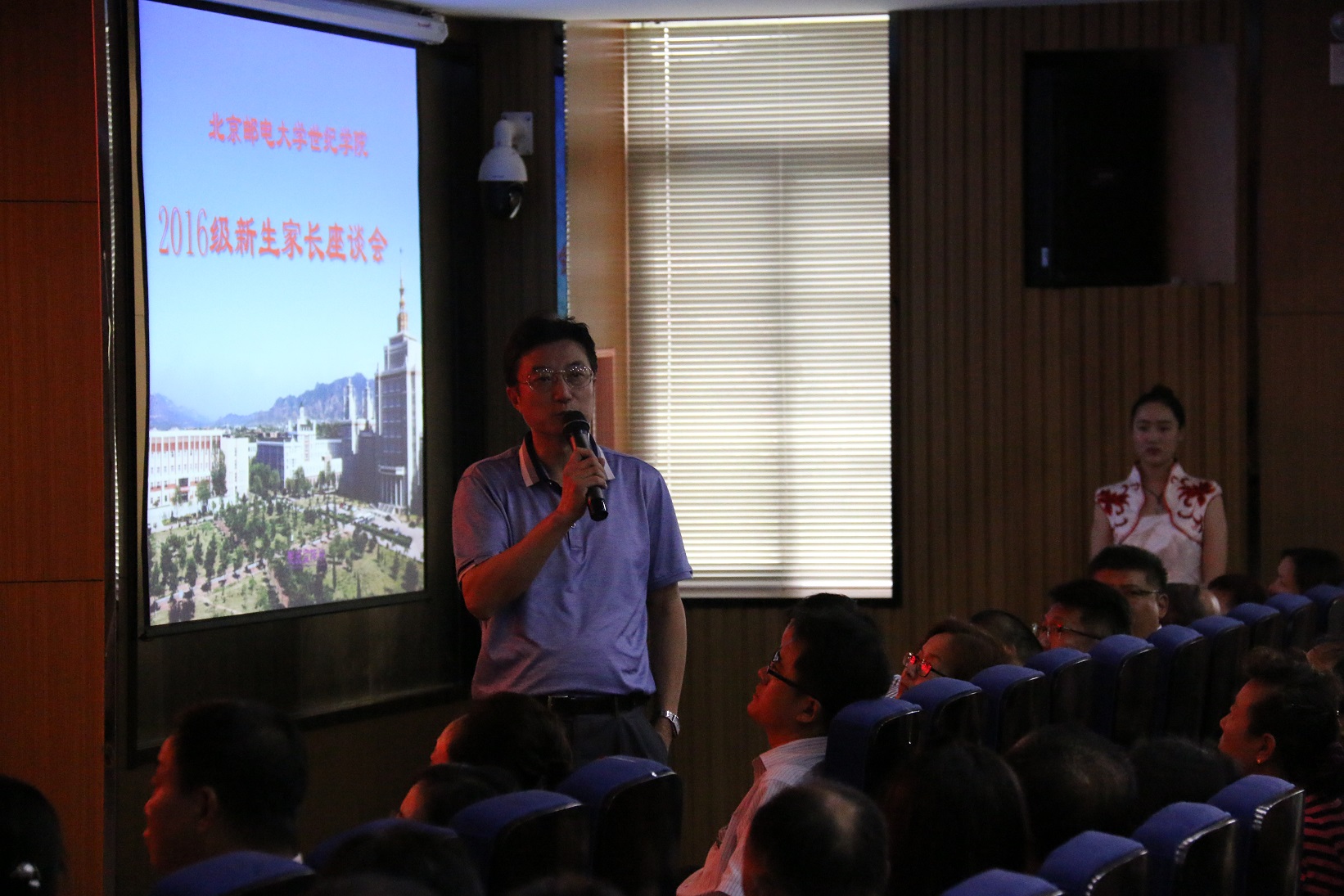 学院党委副书记、副院长孙凯向各位新生家长表示热烈欢迎,并在简单介绍了我院的基本情况、办学理念、教学方式、特色项目、管理模式等内容后,同大家一起观看了十周年院庆宣传片,通过影像的记录使各位家长对学院有了更深的了解和更大的信心。之后各位家长就专业学习、师资力量、考研就业、国际学校交流、北邮访学及学生档案户口等方面踊跃提问,相关职能部门和各教学单位负责人详细解答,双方充分交流,积极互动,气氛热烈。会后还有部分家长同与会人员进行了进一步咨询。