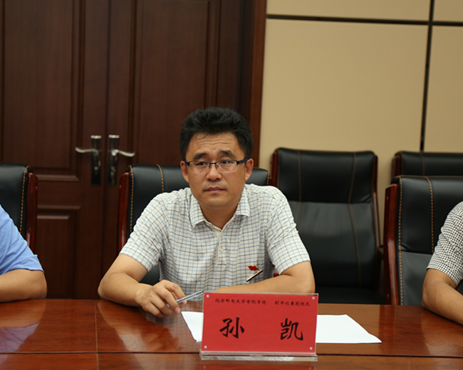 随后,孙凯副院长向祖宇副区长一行汇报了学院安全稳定的相关工作,从健全领导机构、责任落实、完善保障措施、与延庆区相关部门的合作等方面进行了介绍。