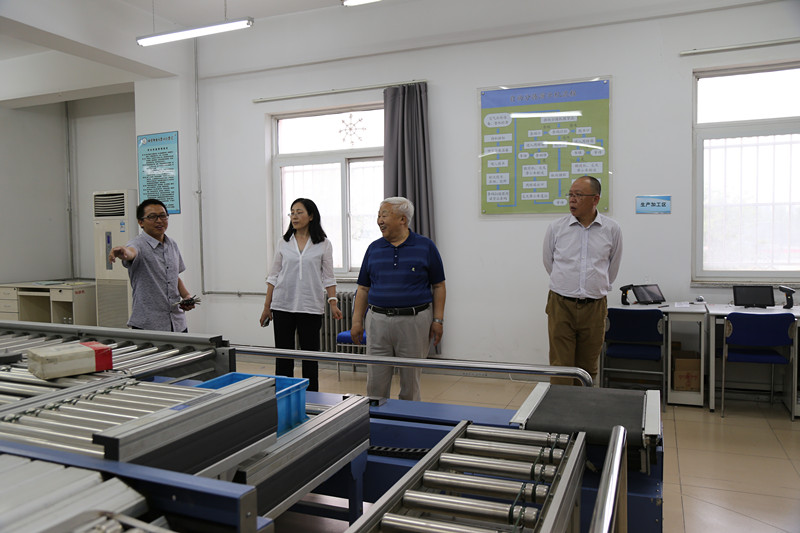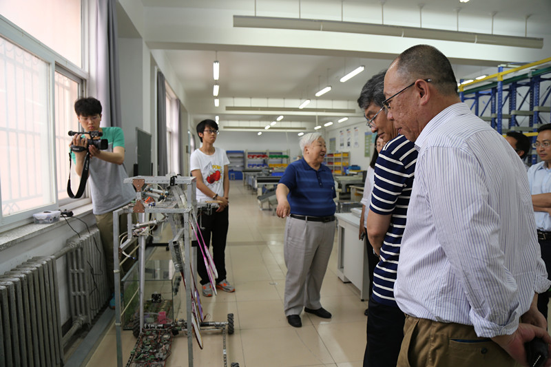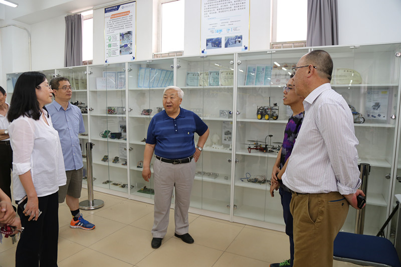 随后,周远清副部长一行在李杰院长的陪同下,参观了学院校园,重点参观了实验楼。参观过程中,周副部长饶有兴趣的观看了由学院教师研发的集电子、机械、物流为一体的自动码垛拆垛设备的工作流程。在创新实验室,当得知橱窗里的机器人均为学院师生共同完成制作时,周副部长对此表示赞赏。