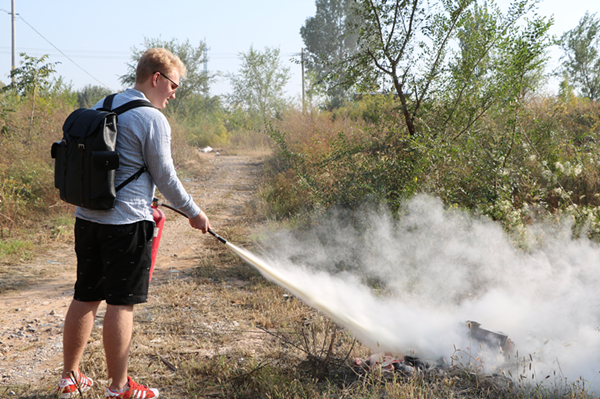 留学生学习使用灭火器