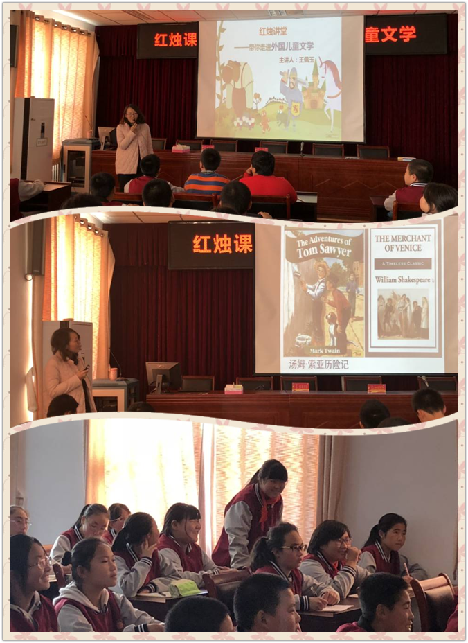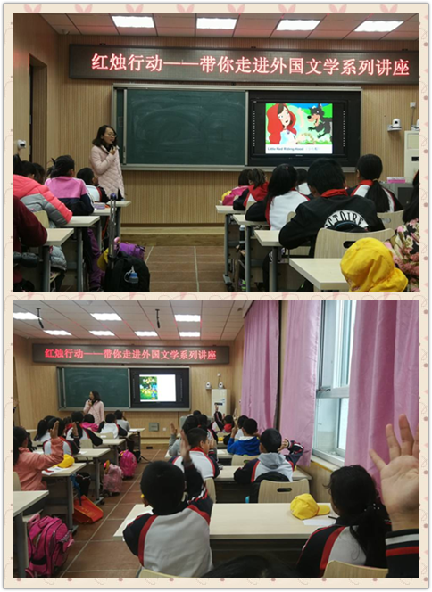 10月24、25日,外语系王佩玉老师先后走进张山营学校、太平庄中心小学,为中小学生作了题为“红烛课堂---带你走进外国儿童文学”的讲座、儿童文学讲座。王老师通过图片、文字、影片和歌曲等多种形式,从中小学生的角度,进行了外国文学的导入课程、世界文学名作的阅读欣赏。王佩玉老师主要教授英美文学,曾获得2018年“外教社杯”英语专业组教学比赛北京赛区二等奖。