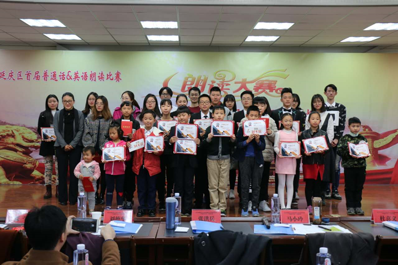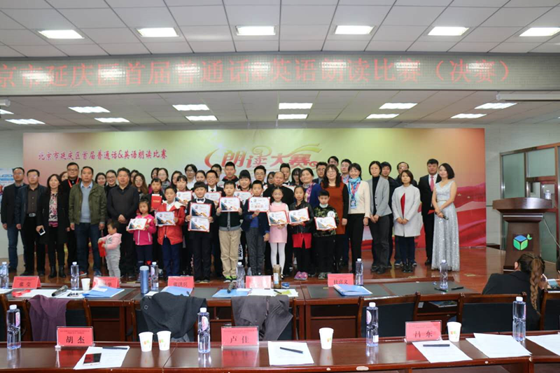 赛后,选手和与会来宾合影留念,延庆区首届普通话&英语朗读比赛圆满收官。(培训中心 供稿)