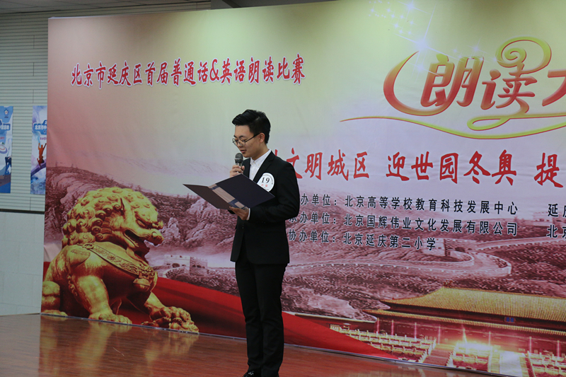 本次比赛由北京高等学校教育科技发展中心及延庆区志愿服务联合会主办、我院及北京国辉伟业文化发展有限公司承办、北京市延庆区第二小学协办,旨在通过选手们的学习交流,加强日常学、练、讲,养成主动张口的习惯,逐步达到国家要求的语言标准化、规范化。比赛邀请了北京教育考试院-伦敦三一学院、英语口语等级考试高级考官张洪兵、马小玲,延庆区社教中心英语高级教师、北京英语口语高级考官张莹,北京市语言文字测试中心普通话水平测试骨干测试员、延庆区语言文字工作委员会教师刘德华以及我院外语系副教授杜喜义5位老师担任评委。