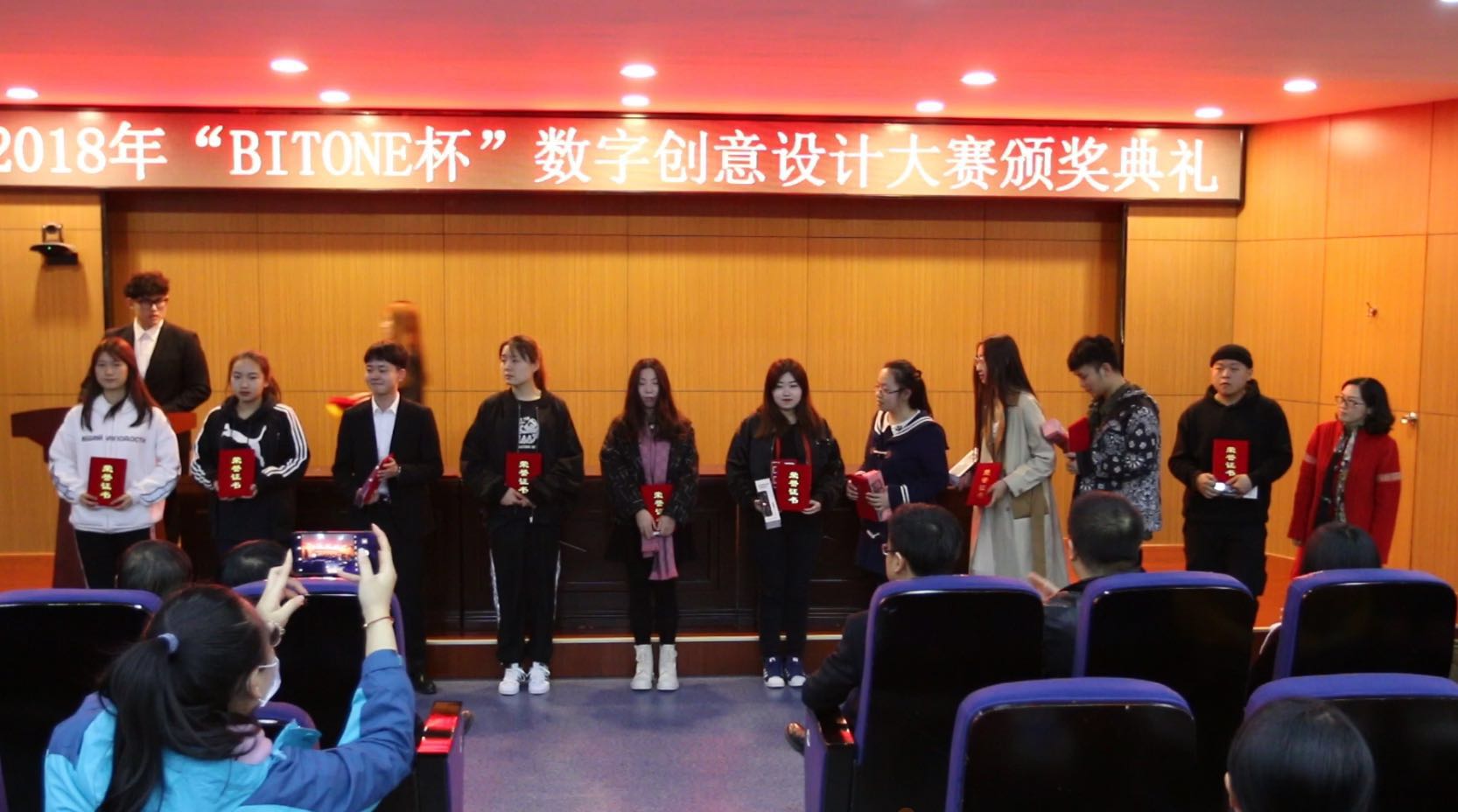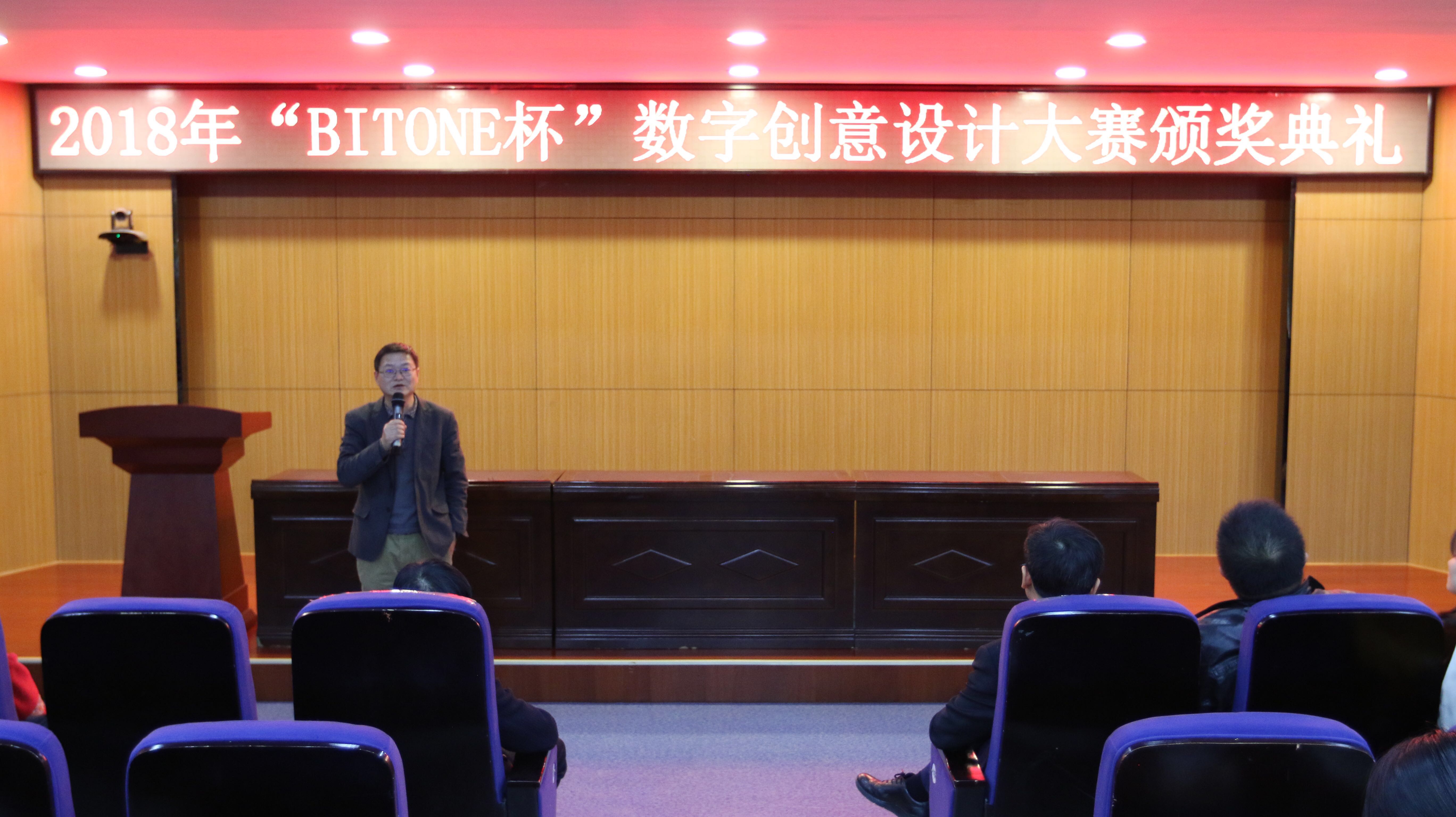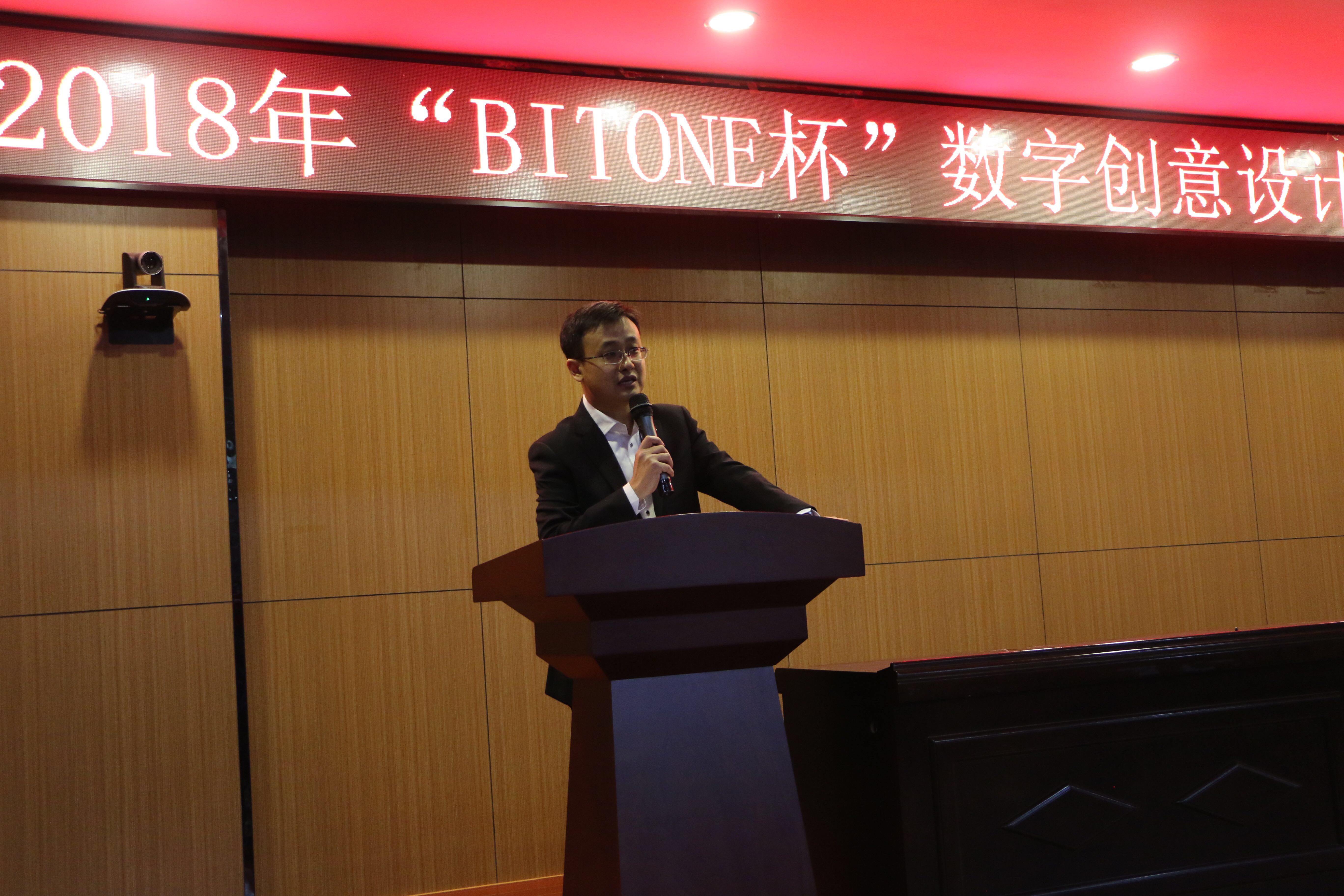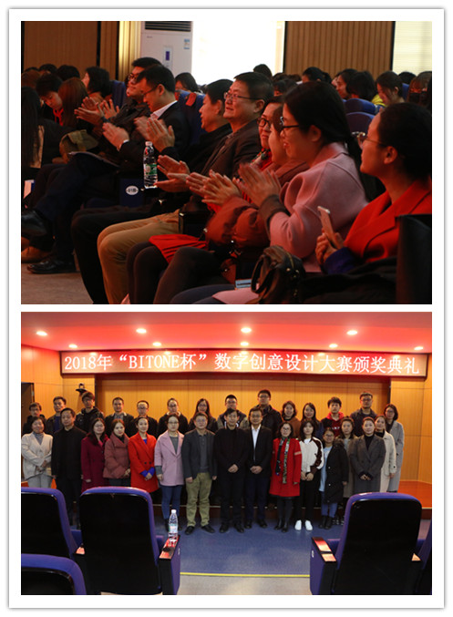 3月20日下午,由艺术与传媒学院承办、比特视界(北京)科技有限公司赞助的2018年“BITONE杯”数字创意设计大赛颁奖典礼在学思楼229报告厅举行。比特视界实践实习中心总经理张南、工作室事业群项目经理孙赛赛、互动项目总监温元本,学院教务处副处长兼大学生创新创业教育中心主任张长江、传媒学院院长淮永建、副院长陈薇及全体教师出席了此次活动。