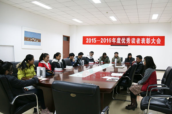 11月22日,图书馆举办了2015-2016年度“优秀读者”表彰暨座谈会。图书馆馆长助理杨明及相关部门老师、“优秀读者”获奖者出席了表彰会。会议由图书馆读者服务部张欣老师主持。