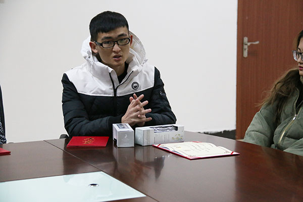 张欣老师首先宣读了“优秀读者”获奖名单,杨明助理为获奖同学颁发了荣誉证书及纪念品。他对获奖同学表示祝贺,鼓励大家带动身边更多的同学走进图书馆,并以“如何更高效地利用图书馆”为主题与大家进行了热烈的讨论。