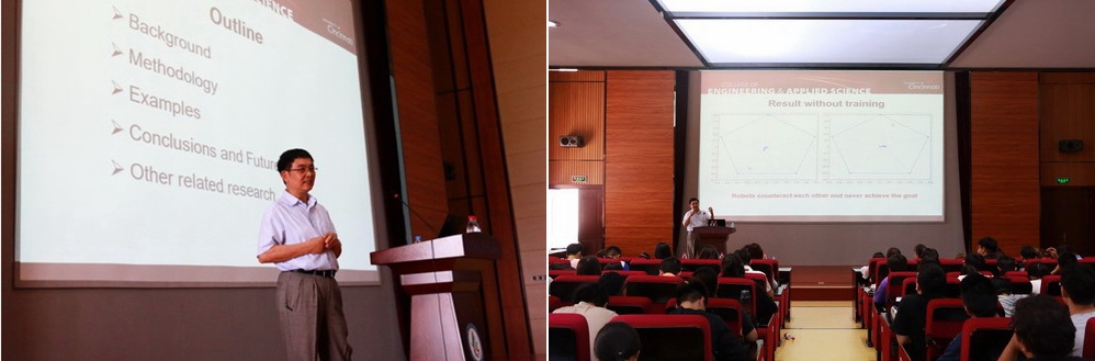 2019年6月19日上午,我院邀请到美国辛辛那提大学工程与工程科学学院智能机器人与自主系统(IRAS)实验室、辛辛那提大学航空航天工程系的艾伦谢泼德讲座教授和清华大学的双聘教授马欧教授,在图书馆报告厅为全院师生带来“机器人协作任务智能实现方法(An Intelligent Approach for A Robot Team to Perform Cooperative Tasks)”的讲座。学院院长孙汉旭、副院长夏素霞以及相关部门负责人、系(院)负责人出席了讲座。