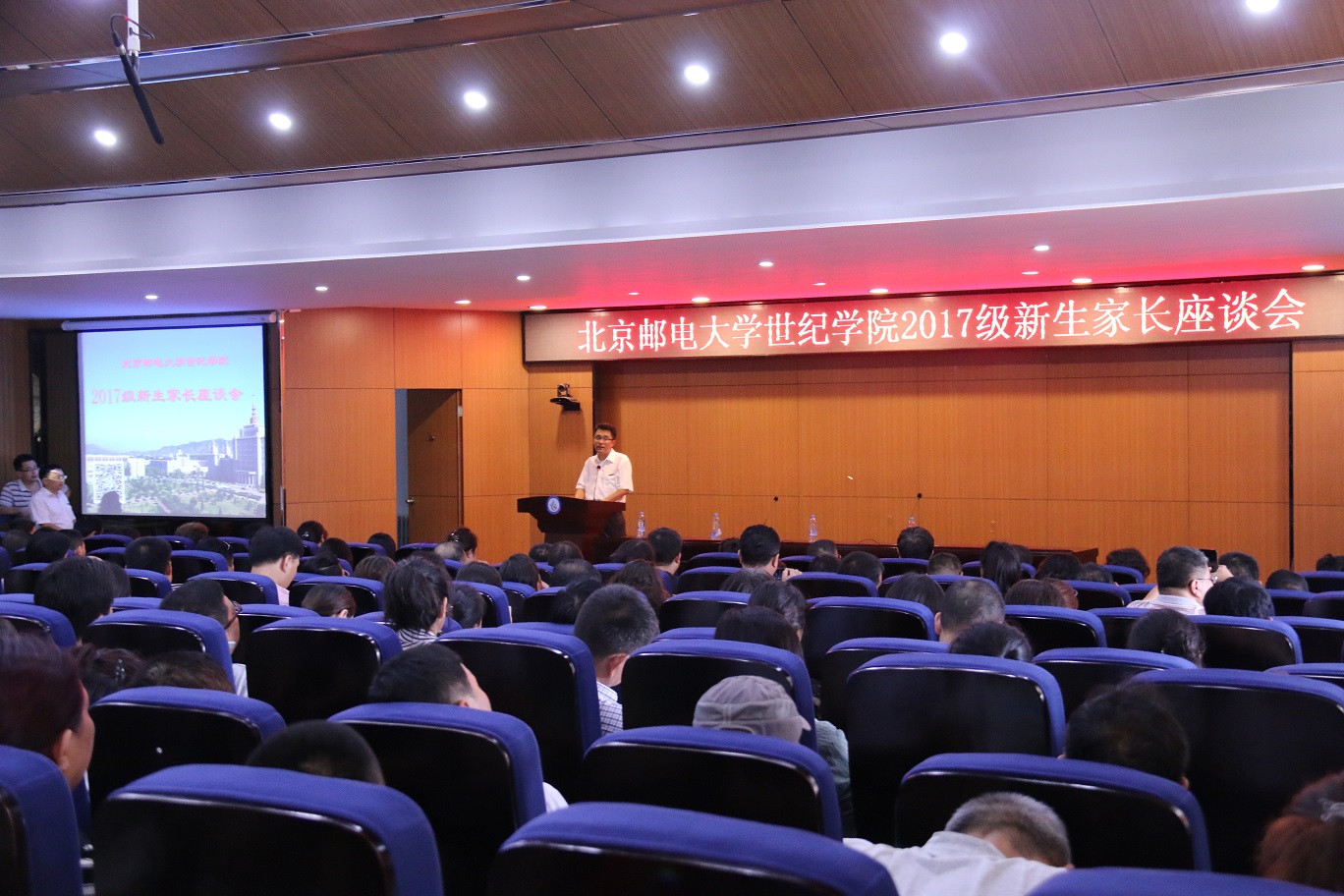 经历了数日的雷雨天气,我们终于迎来了万里晴空,8月17日,2017级新生顺利来院报道。下午13:30,学院在学思楼229报告厅组织召开了2017级新生家长座谈会,学院党委副书记兼副院长孙凯,副院长夏素霞、何晓玫以及部分职能部门、教学单位负责人出席了会议。会场座无虚席,许多家长都站在会场后方和两侧参与互动。学院综合办公室主任周伟主持会议,向各位家长和新生表示热烈欢迎。