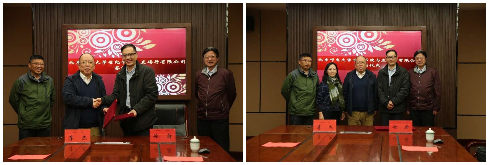 北京邮电大学副校长、学院院长李杰,发码行有限公司董事局主席徐蔚,学院副院长夏素霞,电子与自动化系主任周晓光,通信与信息工程系副主任刘刚等出席了签约仪式。(教务处供稿)