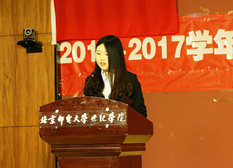 北京邮电大学“优秀团干部”代表武宇洁、学院“十佳志愿者”代表仇兰兰、学院标兵团支部代表李佳欣3名同学作为优秀代表上台发言。武宇洁同学在发言中说:“团学干部是学校联系同学的桥梁和纽带,更是共青团联系青年们的桥梁和纽带,我们要时刻以身作则,起好模范带头作用”。仇兰兰同学结合自己的亲身经历,分享了3年来的志愿服务心得,并号召同学们让志愿活动成为一种生活习惯。李佳欣同学介绍了所属支部2年来取得的成绩及大家付出的努力,强调将继续秉承校训,带领支部再创佳绩。