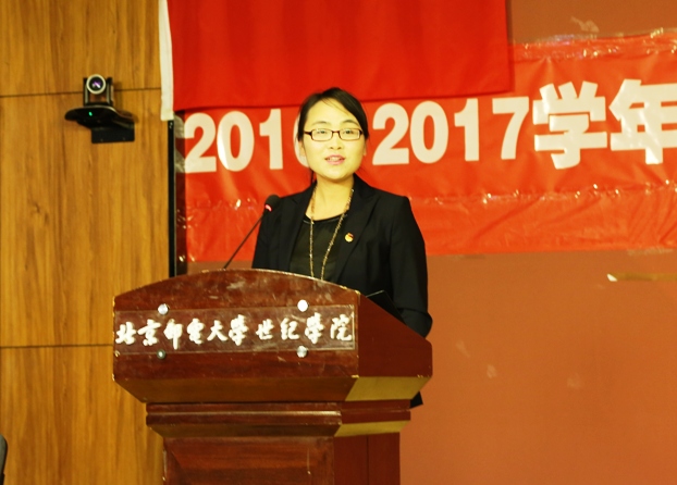 经管系副主任朱亭芮为团校优秀班主任颁奖