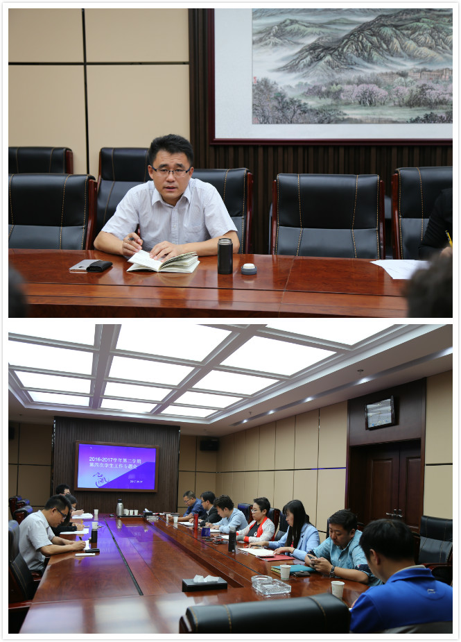 会上,朱在兴处长向参会人员通报了5月份学院的治安情况。针对校门安全问题,保卫处呼吁各系院做好安全宣传工作,预防夏季学生外出安全隐患。岳鑫副处长对5月份安全稳定工作、常规工作、重点工作和特色工作等进行了通报,并对6月份即将开展的学生工作进行了详细说明,重点包括针对毕业生文明离校系列工作、毕业生处分解除工作、优秀毕业生上报工作、学生宿舍卫生安全监督实施工作、学生心理排查工作、学生手册修订工作及征兵宣讲动员工作等。随后,高莎副书记就团委相关工作做了详细的汇报,同时就学生党员发展要求作出相关通报,并提出将根据新的党章规定,策划我院党员发展培养方案。另外,对即将举办的毕业典礼、团委志愿者、暑期社会实践等活动作出安排。各系院分管学生工作负责人简要汇报了本系院5月份的相关工作作,并提出了在工作中遇到的问题。