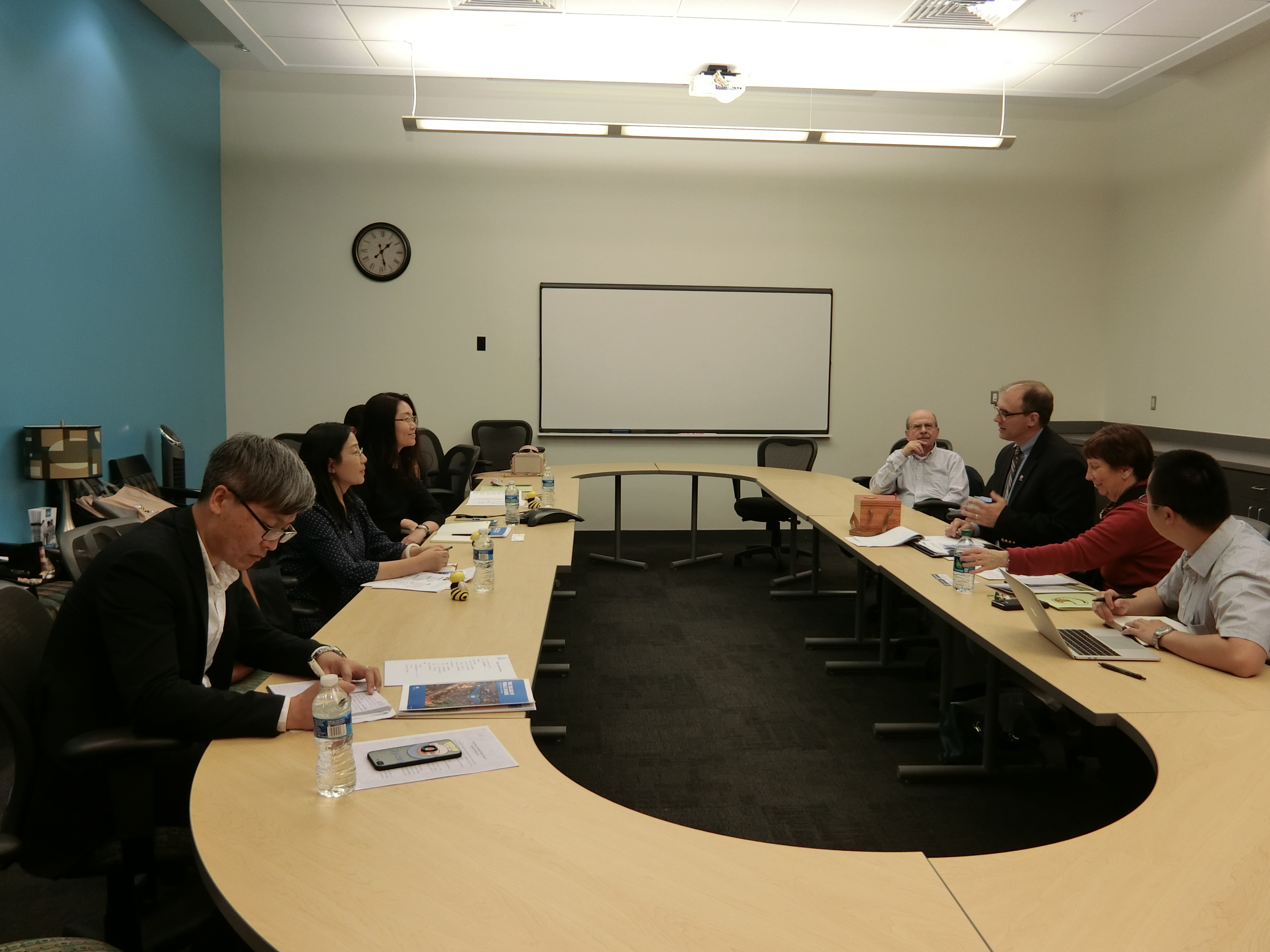 5月1日上午,代表团一行赴费城三大名校之一的德雷塞尔大学进行了实地考查,与计算与信息学院院长Deng Yi教授、Xia Lin教授、Yuan An教授及招生负责人MattewLechtenberg先生进行了会谈。双方就合作专业、内容、入学要求等进行了商谈并达成一致。