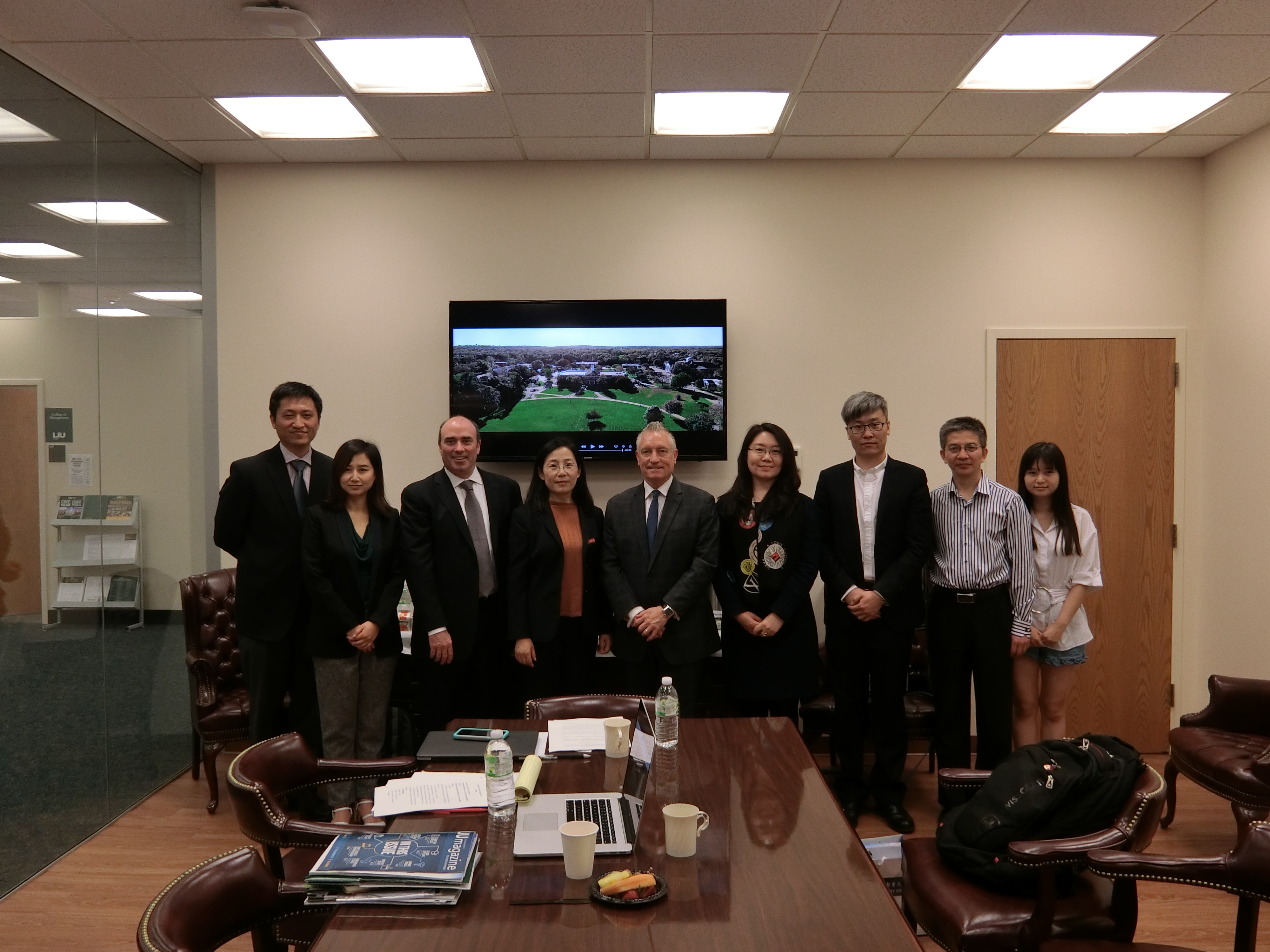 4月28日上午,夏副院长一行3人访问美国长岛大学。管理学院院长Rob Valli教授、院长助理Ray Pullaro教授、管理学院终身教授Jiamin Wang先生、Tony Bao教授、NingRen教授和Ye Su女士出席会谈。双方就计算机科学与技术专业、物联网专业进行了课程对接,双方一致认为在专业设置以及培养目标上高度一致,希望未来可以在教师访学、科研合作和学术交流等方面加强联系。夏素霞副院长代表李杰院长签署了教师交流和学生互换等合作协议。随后,我院代表团对长岛大学的基础设施和院系进行了实地考察。