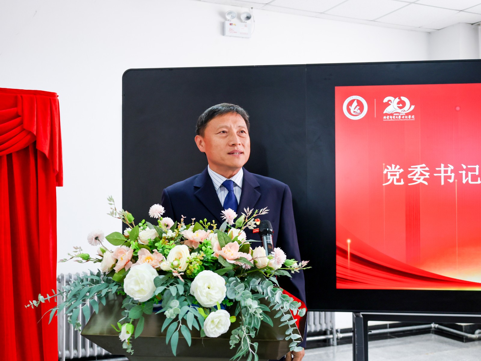 王常军书记宣布展览正式开幕。在热烈的掌声中,谢苗峰院长与王常军书记共同为校史馆与成果展揭幕,将现场气氛推向高潮。