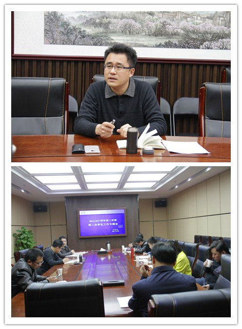 孙凯副院长在听取了大家的汇报后,对学院学生工作队伍的努力表示肯定,也对大家提出的问题一一给予了解答。同时,他提出,各系(院)要夯实学生工作基础、提高学生工作队伍整体素质、不断创新教育模式和完善教育平台,具体要求:一要对安全稳定工作常抓不懈,尤其注意春季防火工作;二要对学生进行分类管理,增强学生思想政治教育工作的实效性,尤其是重点关注特殊群体学生;三要强化学生的日常行为规范,引导学生践行文明修身,养成良好的行为习惯;四要加强辅导员队伍建设,完善自我,提高业务水平和综合素质;五要对现有学生活动进行归类,更加突出学生活动的目的性;六要制定详细的心理委员培训计划,充分发挥心理委员的积极作用;七要对“新生引航教育工程”进行总结和提炼,增强2017届新生教育工作的针对性和实效性;八要在学生工作中注意廉政建设。(学生处 倪洋供稿,孟文琦 摄影 )