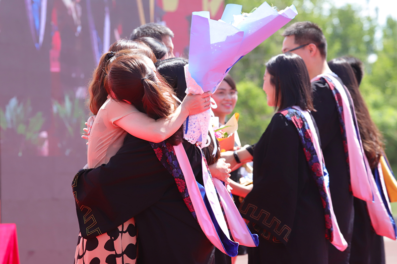 典礼上,谢苗峰书记代表学院接受了艺术与传媒学院王梓枋、赵明研同学代表全体毕业生向母校赠送的画卷。同时,6位毕业生代表上台,分别向教师、辅导员、生活老师和家长代表献花,表达最诚挚的敬意和谢意。此外,计算机科学与技术系毕业生齐彦博成功考取北京市公务员,其家长为感谢老师们的悉心栽培,特赠与锦旗一面,感激之情溢于言表。