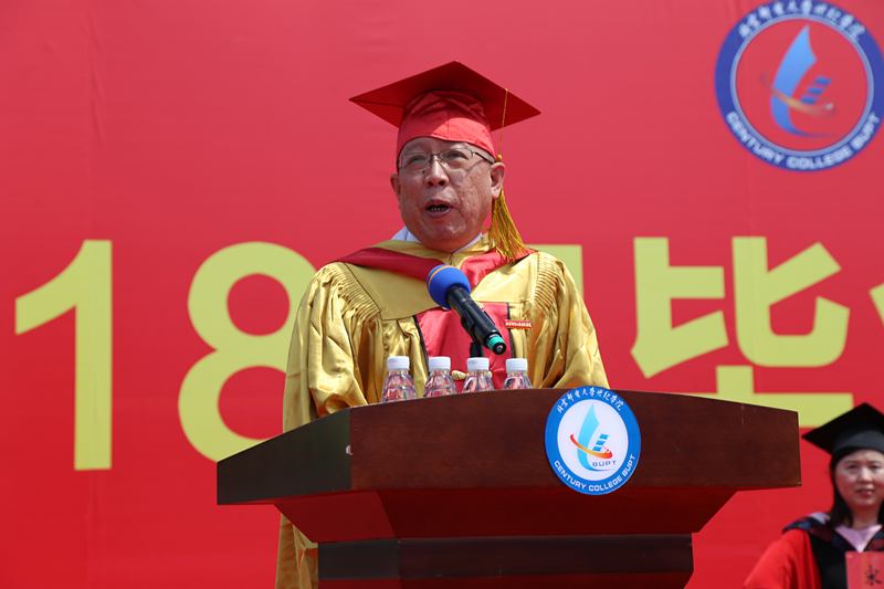 虽然每年我都会参加毕业典礼,为同学们祝福拨穗,但此时此刻,看到你们,我心里又增添了许多的激动和感慨。因为你们是学院从大兴搬迁至延庆后招收的第一届学生!当年学院的老师们和你们一样怀揣梦想,不畏路途遥远,不惧风寒地冻,不计生活设施条件差,义无反顾地投入到学院的二次创业的事业中。你们自己也参与和见证了学院迁址后充满艰辛的二次创业和建设,并以自己的方式为学院的建设和发展做出了突出的贡献。你们拼搏进取,在国际、国家和北京市各类学科竞赛中屡获殊荣,不断刷新学院的最好成绩;你们才华横溢,运动赛场上、追光灯下,在各自擅长的舞台上绽放光彩;你们披荆斩棘,在一次次挫折或磨练中不断突破自我;你们爱心满满,组织参加一次次的志愿者活动,向社会展现了当代大学生价值追求。在此,我要向同学们表达由衷的谢意!感谢你们对学校的理解、信任和支持,感谢你们以优异的成绩为母校增光添彩。我将永远怀念与你们共同走过的时光,你们的激情与奋进,你们的成长和进步,让我们深切体会到“得天下英才而教育之”的快乐。同时,我也要向同学们表达深深的歉意。你们一入学,学院就规划建设的体育馆、东区浴室,还有教师公寓,四年过去了,但设计蓝图依然还在办公室的墙上。每当想起此类不如人意之事,便深感愧疚。在此,向同学们、老师们致以真诚的道歉。当然,我们也将继续努力敦促学院董事会抓紧解决这些问题。