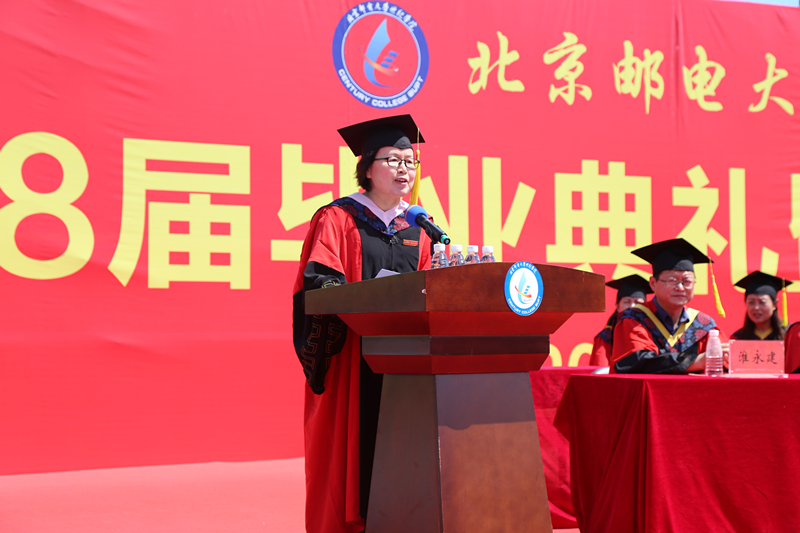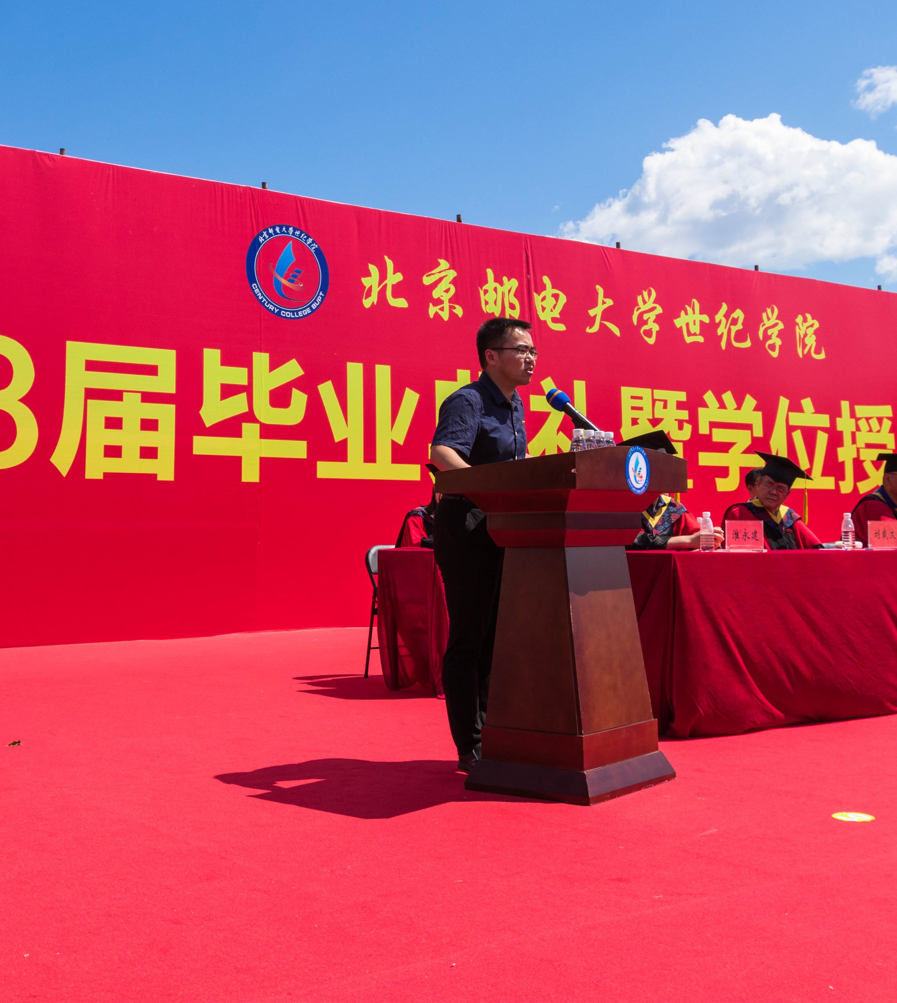 亲爱的同学们,从今天起,你们将离开校园,奔赴五湖四海,走向万水千山。但始终会有一个共同的名字将我们紧紧联系在一起,那就是——北京邮电大学世纪学院。愿“明德 励志 笃学 致用”的校训伴你们成长,愿母校精神随你们传扬,无论你们将来会有什么样的身份,也不管你们将来走到哪里,你们的点滴进步和发展都会让母校感到欣慰。我相信你们的青春芳华和奋斗成就会让母校永远为你们感到骄傲和自豪。